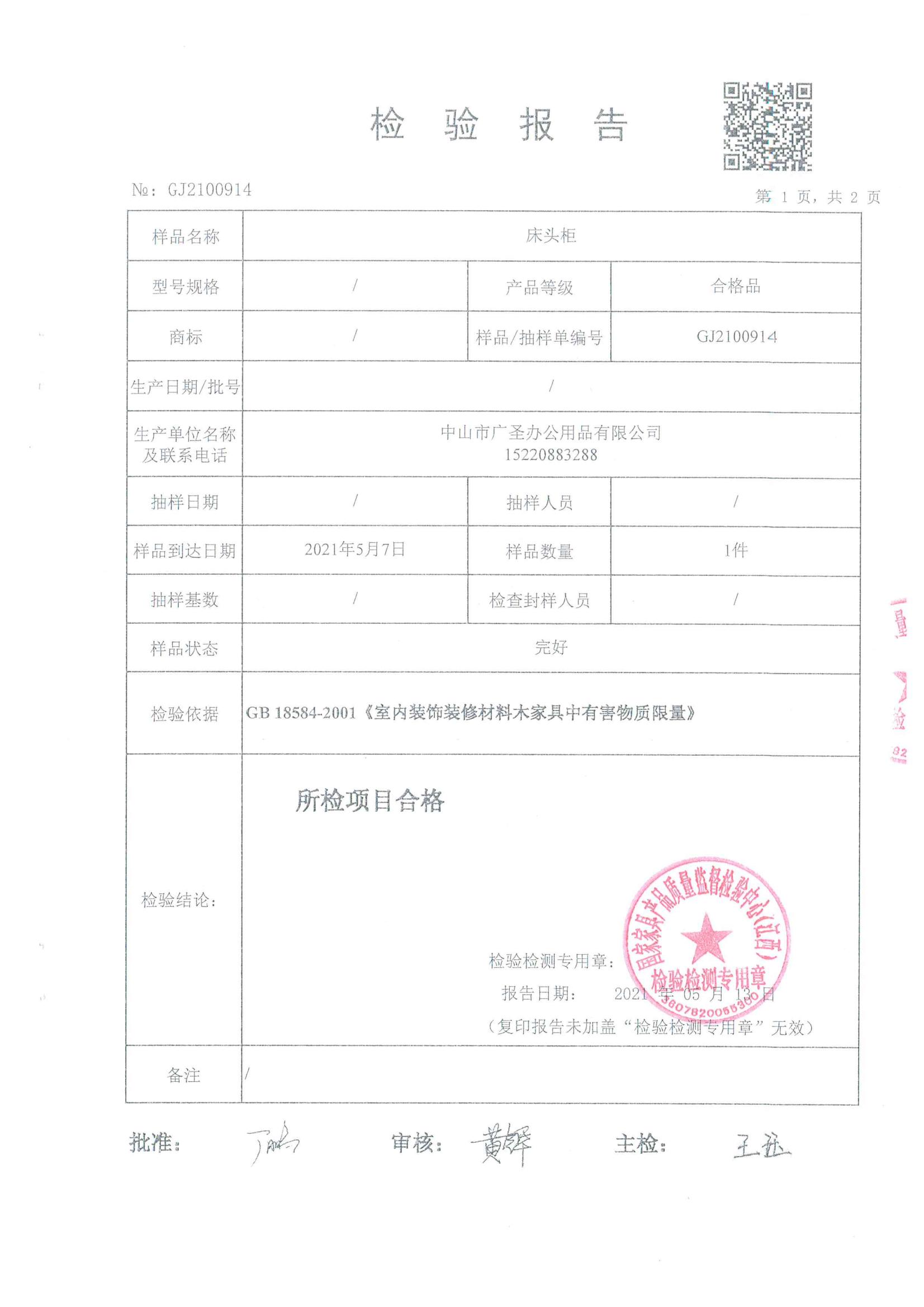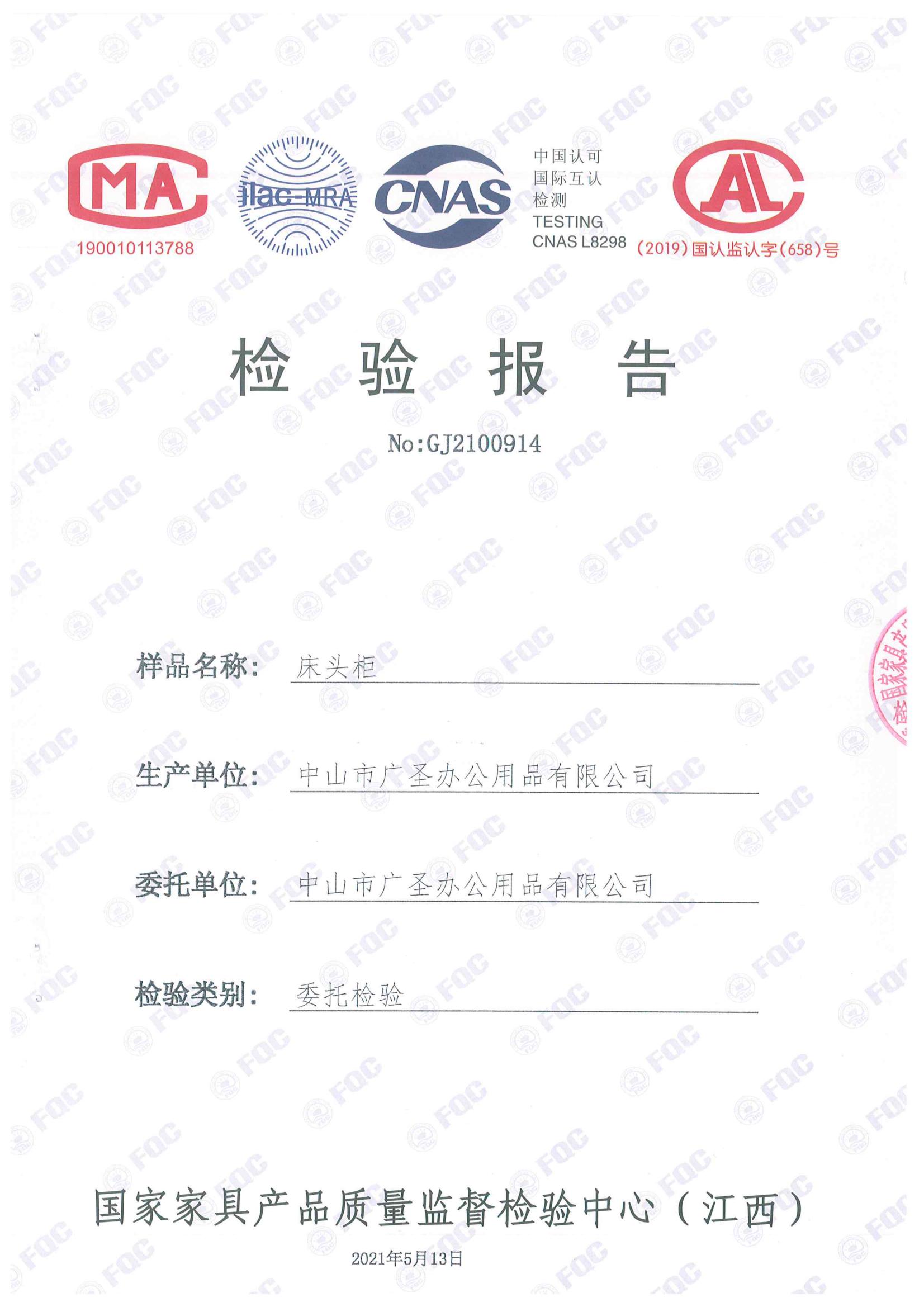 廣圣 床頭柜 21年檢測報告  :   廣圣 床頭柜 21年檢測報告