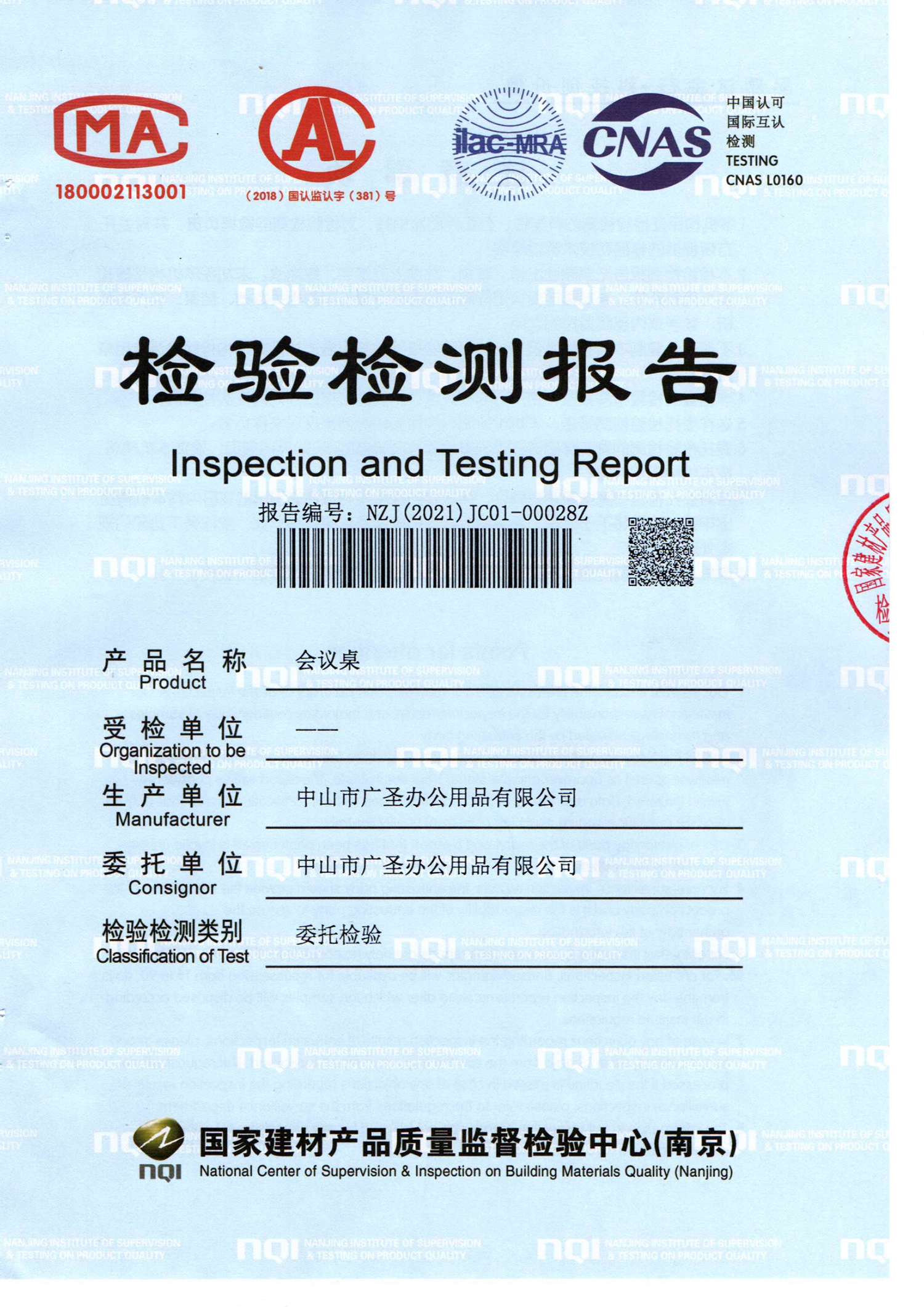 廣圣 會議桌 21年檢測報告  :   廣圣 會議桌 21年檢測報告